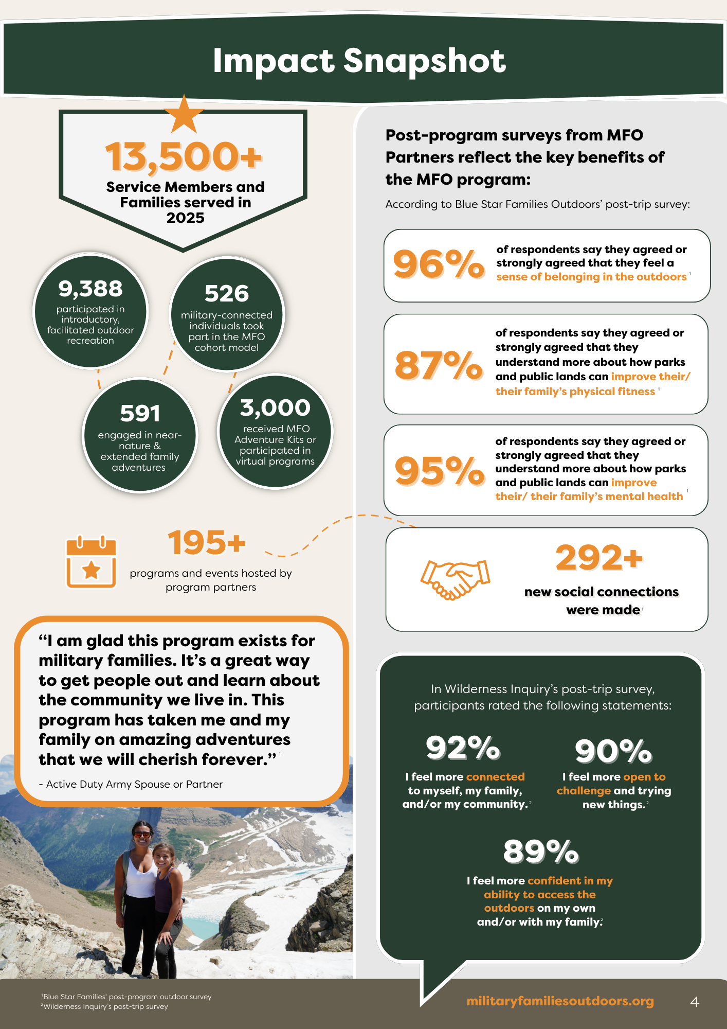 Translate high-impact, place-based outdoor programming into clear, consistent storytelling that resonates with military families, partners, and funders—across a national footprint.